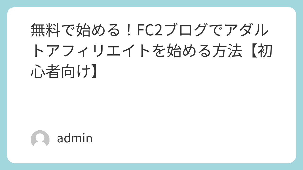 - FC2ブログなら無料&匿名でアダルトアフィリを始められる