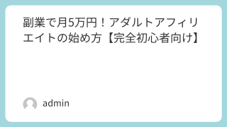 Uncategorized 副業で月5万円!アダルトアフィリエイトの始め方【完全初心者向け】 この記事では、「アダルトアフィリエイトってなに?」「どうやって始めるの?」という超基本から解説します。 2025.06.29 Uncategorized
