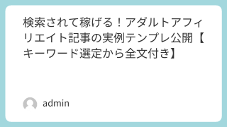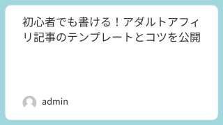 Uncategorized 初心者でも書ける!アダルトアフィリ記事のテンプレートとコツを公開 この記事では、アダルトアフィリエイトを始めたばかりの方に向けて、**実際に「報酬が発生しやすい記事構成テンプレート」**を紹介します。「どう書けばいいか分からない」「文章が苦手…」という方でも、テンプレ通りに書くだけでOKです。 2025.06.29 Uncategorized
